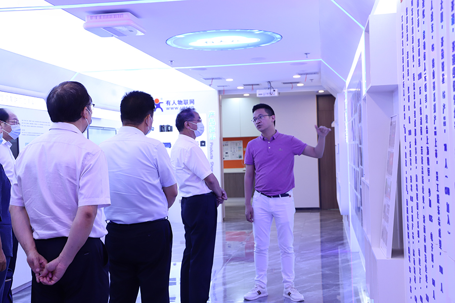 在董事长古欣的讲解下,省人大财政委员会调研组、市人大财经委领导一下了解了有人物联网发展历程、发展情况及创新产品。参观过程中,董事长古欣重点介绍了有人物联网在工业互联网领域建设情况、云服务解决方案,并现场演示了智慧养殖系统、智慧农业系统、智慧楼宇系统等的操作与运用,展现了有人物联网在发展数字经济、赋能工业强市、建设数字强省等方面所作的努力与贡献。