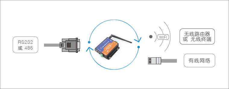 一句话解释:实现串口(RS232/485)与WIFI的双向透明传输的设备。