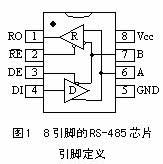 由于它使用一对双绞线传送差分信号,属半双工通信,所以需要进行接收和发送状态的转换。一般的8脚TTL电平到RS-485电平转换芯片的引脚定义如图1所示。