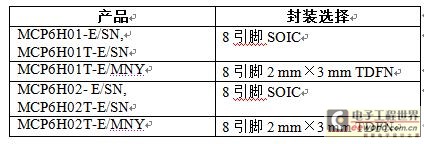 下表汇总了MCP6H01/2运放的封装选项。样片可以在http://www.microchip.com/get/5DU9订购,并可通过microchipDIRECT (http://www.microchip.com/get/4HJJ)批量订购。欲了解更多信息,请联络Microchip销售代表或全球授权分销商,也可浏览Microchip网站http://www.microchip.com/get/MTL1。