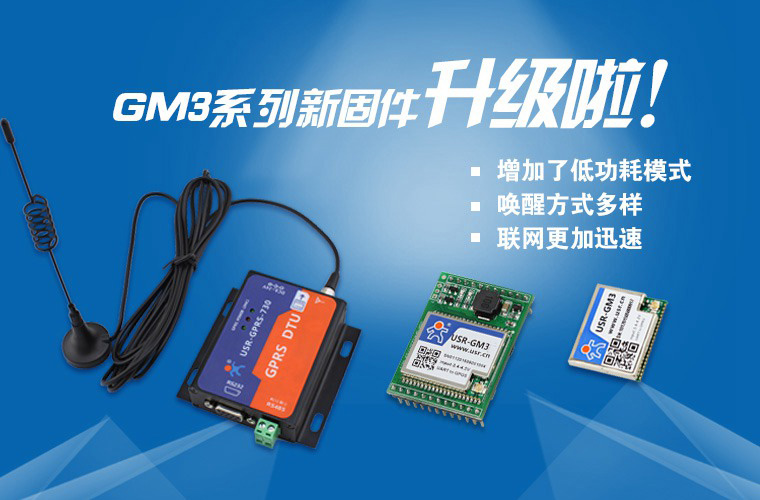 GPRS模块GM3固件全面升级,增加了低功耗模式、唤醒方式多样,增加基站定位,增加GPIO控制和HTTP包过滤功能等,并修复了一些BUG。总体来说,此次固件升级可以让GM3的联网更加迅速,功耗更低。