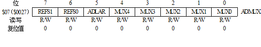 这5个位用于对连接到ADC的输入通道和差分通道的增益进行选择设置,详见表6.2.2。注意,只有转换结束后(ADCSRA的ADIF是“1”),改变这些位才会有效。