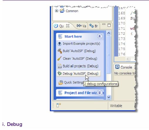如果需要调试其他型号的MCU,请参考附录中的相关文档。 5 闪烁灯:编译、下载、调试5.1 从快速启动面板导入闪烁灯项目例子项目对于初始开发有很大的帮助作用。
