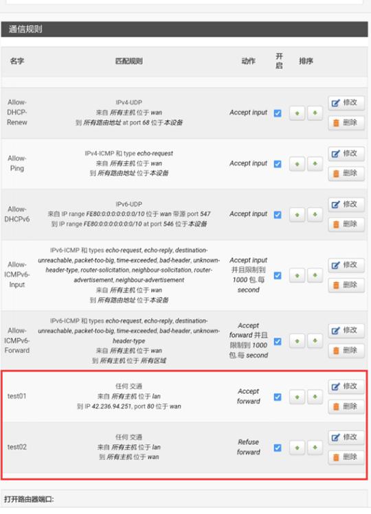 第一步,登录最新版本固件的网页(如果您目前使用的版本不是最新版本,请进行固件升级),点击“防火墙”子菜单中的“通信规则”。