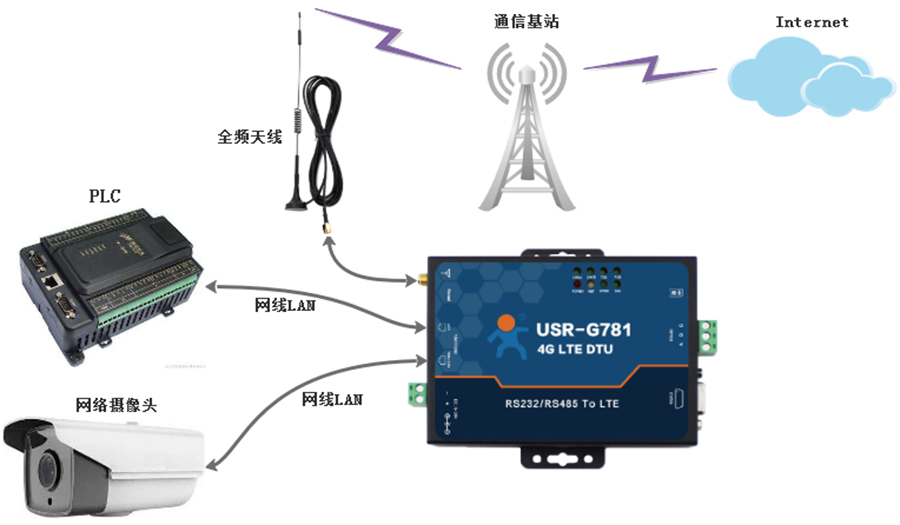 4G DTU的双LAN组网方式通常用于接两台网口设备的项目环境下,不需要再通过增加交换机的方式实现。