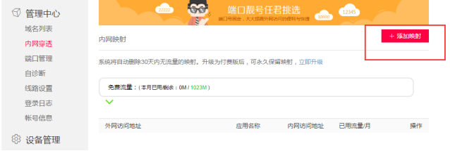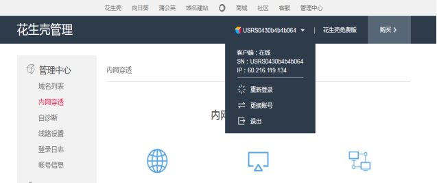 第六,内网穿透。切换到账号登录后,点击左侧的内网穿透。