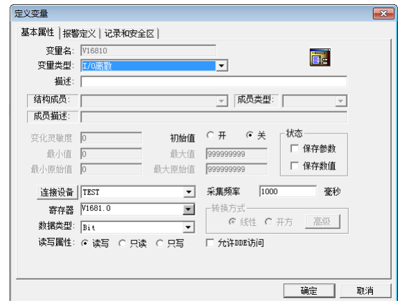 2.新增V1681.0,变量类型为离散,数据类型为Bit。