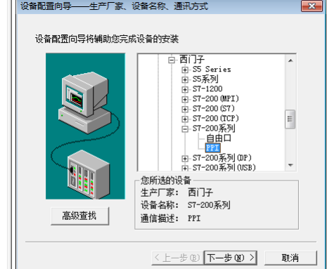 1.再设备内选择西门子s7-200,接口选择PPI,同时可以给设备自定义命名。