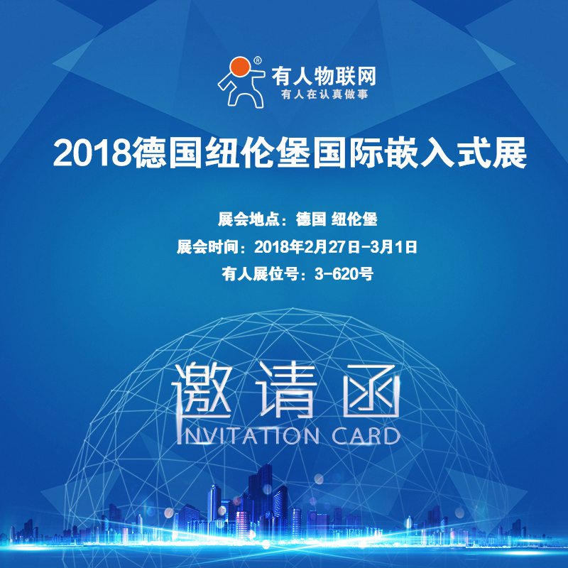 2018年2月27日,德国纽伦堡嵌入式自动化展将盛大开幕。本届展会是嵌入式体系业界重要的年度盛会之一,也是全球规划最大的嵌入式展会,是嵌入式职业经济发展和欧盟工业发展趋势的晴雨表。有人科技作为嵌入式通讯领域专家,必将前往国际性嵌入展览会,展示嵌入式设备和体系领域的最新成功研制结果。