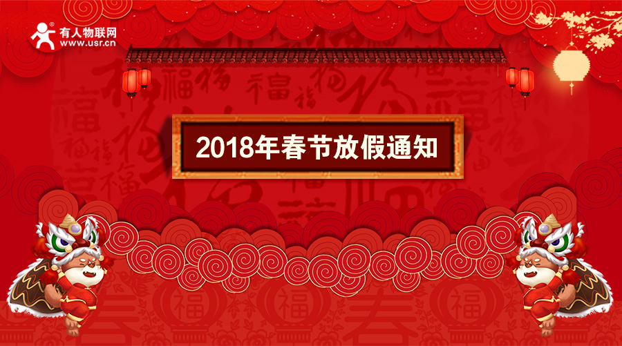 2018年春节即将到来,济南有人物联网全体员工提前恭祝广大新老客户:春节快乐、生意兴隆、万事如意!非常感谢您长期以来对我们工作的理解与支持。