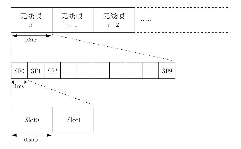 其中,每个时隙(Slot)0.5ms,2个时隙组成1个ms的子帧(Sub-Frame),10个子帧组成1个10ms的无线帧(Radio Frame)。因此,1个无线帧包含20个时隙。