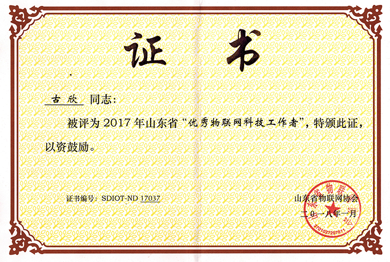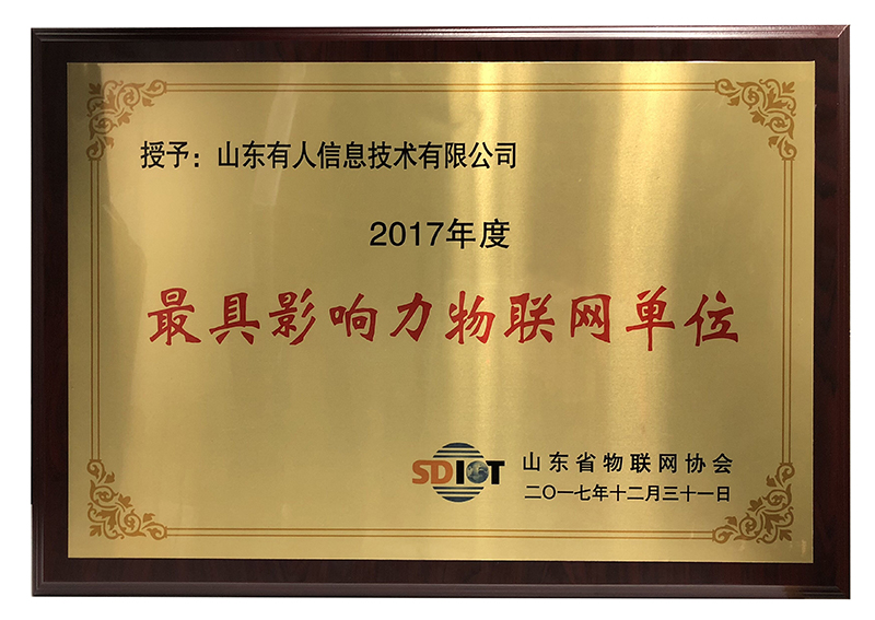 有人物联网凭借最新技术与良好口碑,荣获“2017年度山东省最具影响力物联网单位”;公司研发的“电力行业4G DTU”产品荣获“2017年山东省十佳物联网产品”;有人物联网创始人兼CEO古欣荣获“2017年山东省优秀物联网科技工作者”称号。
