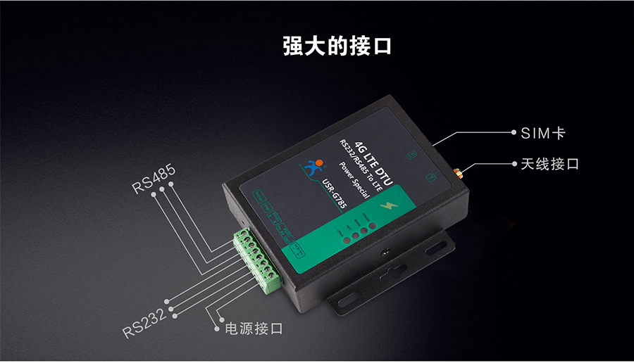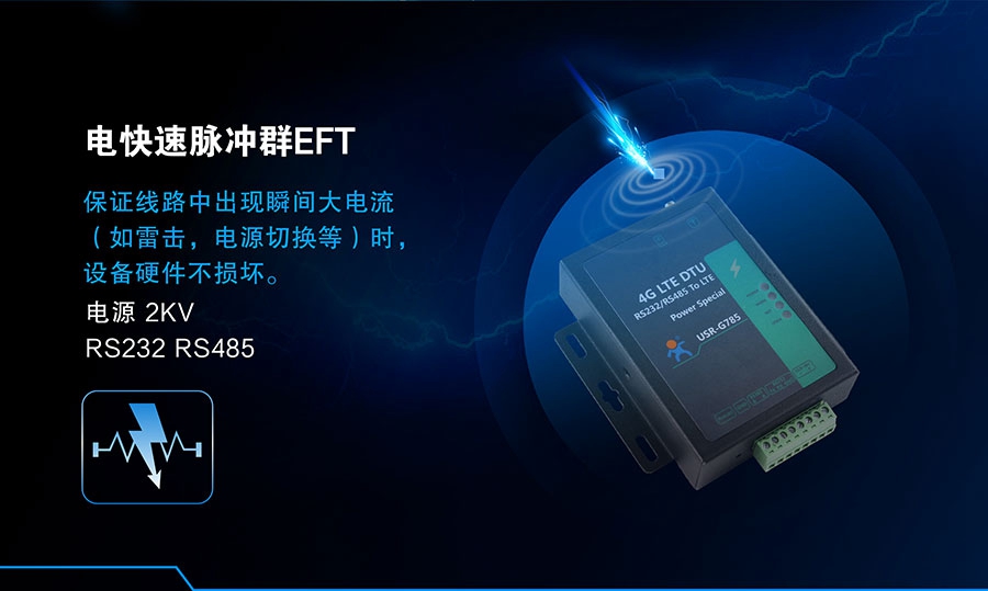 USR-G785 是一款高稳定、抗干扰的工业级无线数据传输终端,专为电力行业设计,为苛刻环境下无人值守的电力项目,提供稳定的网络通信。既可以实现常规 DTU 的数据透传功能,也可以实现电力专属协议透传功能。通过简单的 AT指令进行设置,即可轻松使用本产品实现串口到网络服务器的双向数据传输。