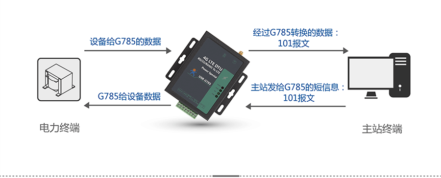按照电力101协议传输数据,DTU作为子站端的一部分,只需将数据通过串口发给DTU,USR-G785就会将101报文发送给服务器。