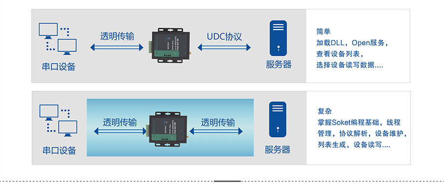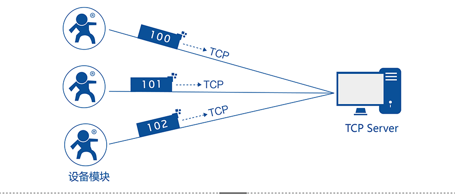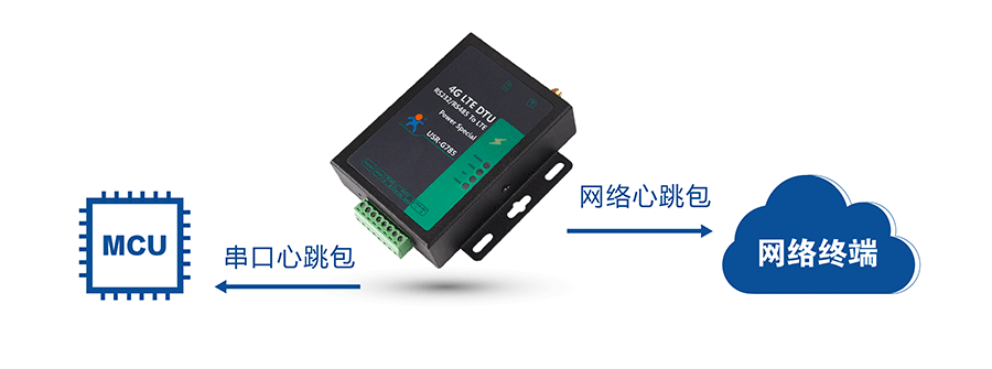 此模式下,用户的串口设备可以通过DTU发送数据到指定的服务器上,DTU也可以将服务器的数据转发到串口设备上。