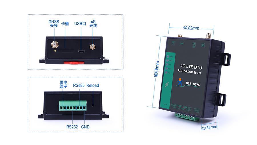 USR-G776-GNSS将各类传感器采集到的数据快速传输到云平台,