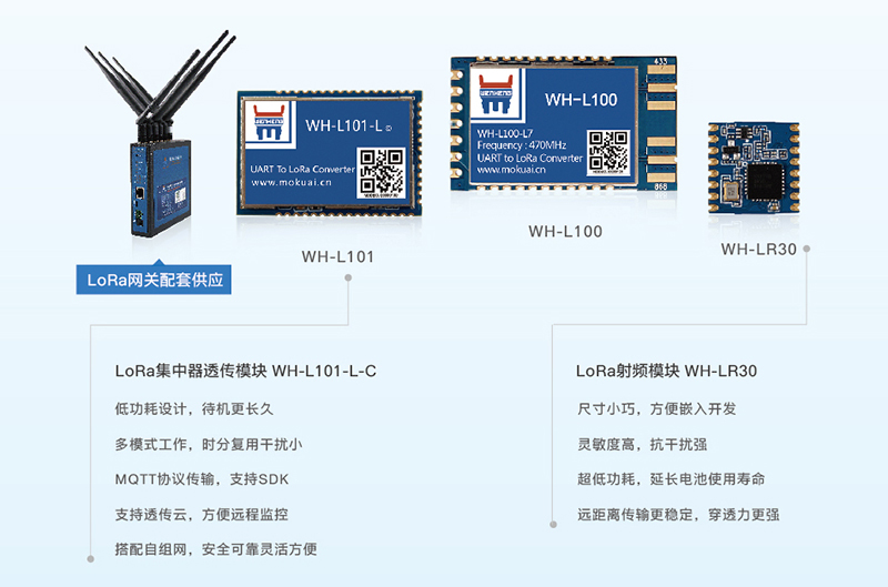 LoRa星型模块WH-L101-L-C与LoRa无线网关USR-LG220-L配合,提供两种工作模式:
