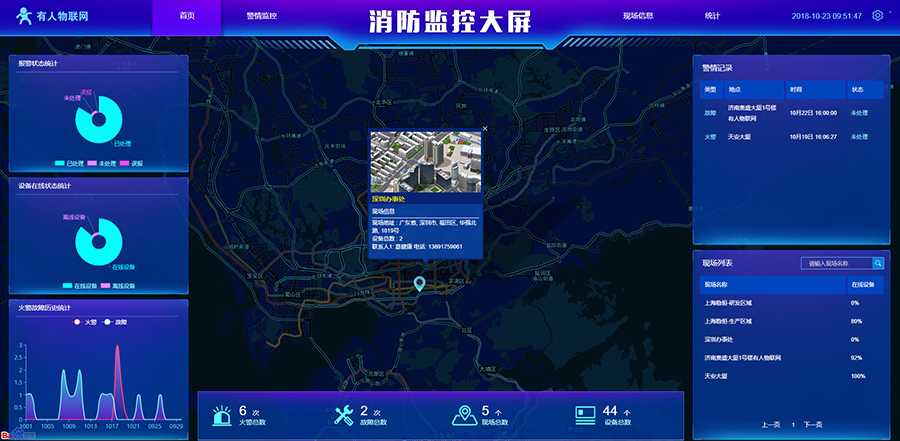 3、管理系统以大屏、手机端、APP等多种不同形式向外发布预警指令,提示相关人员前往查看火情,第一时间将火灾事故造成的损失降到最低