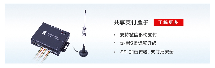 随着支付宝、微信等平台的迅速发展,移动支付愈加便捷,但共享设备要实现扫码支付的自助化服务需要将扫码支付与共享终端结合,有人物联网针对共享行业运营痛点,研发了USR-PAYNET100-GR共享支付扫码盒子,并利用 4G/NB-IoT/Wi-Fi 等联网方式与有人云共享管理平台实现了数据的互联。有人物联网的一站式服务,可帮运营商实现共享设备的远程监控和维护、财务分析管理等智能化管理,提高管理效率、降低运营成本。